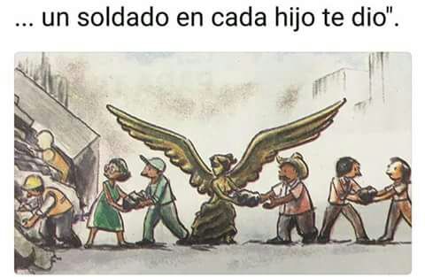 “Un soldado en cada hijo te dio” reza orgulloso nuestro himno nacional. Un fragmento que todos tienen tatuado desde el 19S en el alma. Al ver como mano a mano, persona a persona, fuerza tras fuerza, los ciudadanos nos volvimos uno para proteger a nuestra nación. Era inspirador, y en ese momento, a pesar de todo nuestro dolor, el pueblo se daba a la tarea de increpar a un gobierno indiferente, amargo y completamente vacío ante las necesidades de un pueblo que brillaba de esperanza y pundonor.