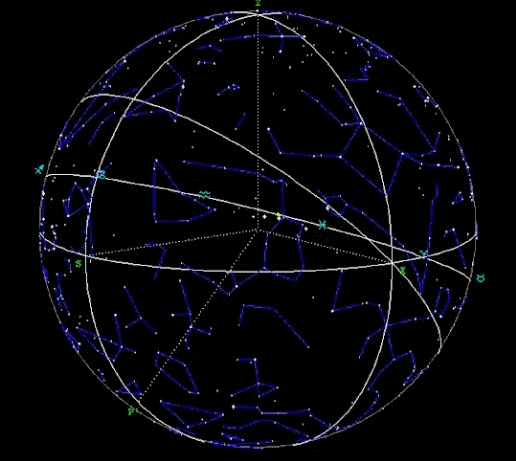 El video muestra una pantalla dividida en dos: mientras que del lado izquierdo aparecen las constelaciones desde el punto de vista terrestre, a la derecha un círculo amarillo simula el polo norte de la Tierra, vista desde un ángulo elevado que se aleja cada vez más del Sistema Solar.