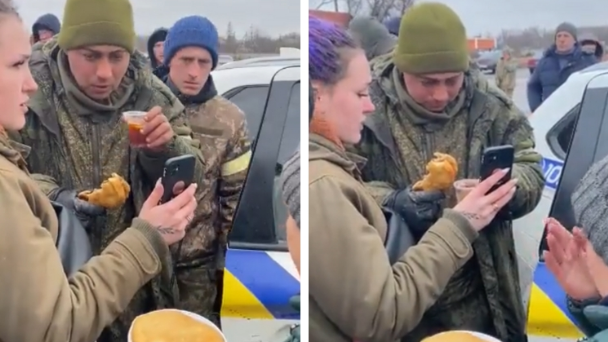 Soldado ruso se rinde y es alimentado por ciudadanos ucranianos