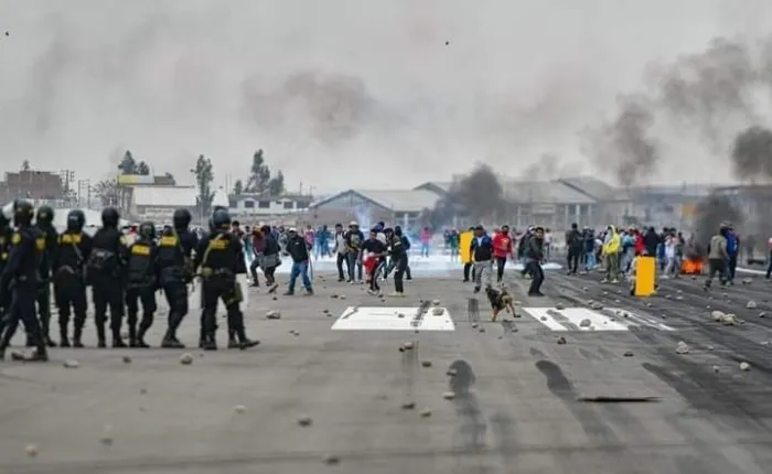 En la ciudad sur andina de Andahuaylas, el ministerio de Interior reportó dos personas fallecidas y una veintena de heridos, entre ellos un policía, tras violentos enfrentamientos en el intento de los manifestantes de tomar por asalto el aeropuerto de la ciudad.