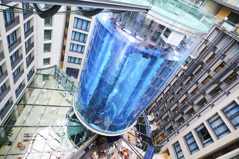 El AquaDom, de 25 metros de altura, era descrito como el tanque cilíndrico más alto del mundo, y contenía mil 500 peces tropicales. Entre sus 80 especies había peces cirujano azul y peces payaso, ejemplares coloridos popularizados por el filme animado “Finding Nemo”.