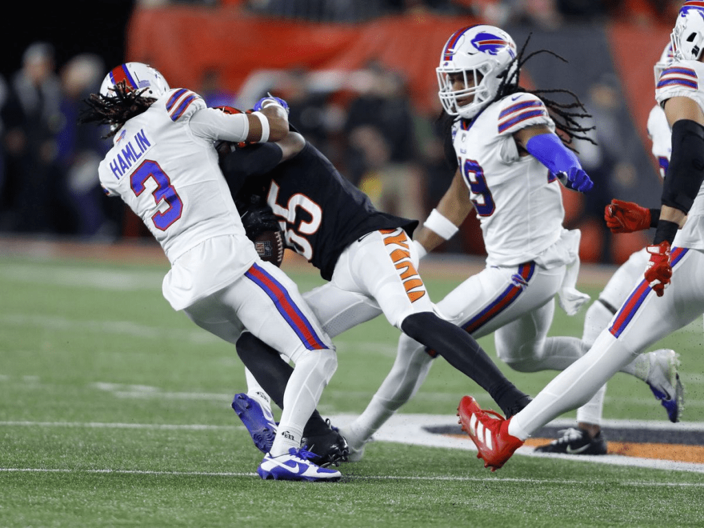 En una escena escalofriante, Hamlin recibió reanimación cardiopulmonar en el terreno de juego, rodeado por sus compañeros, algunos de los cuales lloraban mientras lo ocultaron de la vista del público. Se lesionó mientras derribaba al receptor Tee Higgins en un lance aparentemente rutinario que no parecía inusitadamente violento.