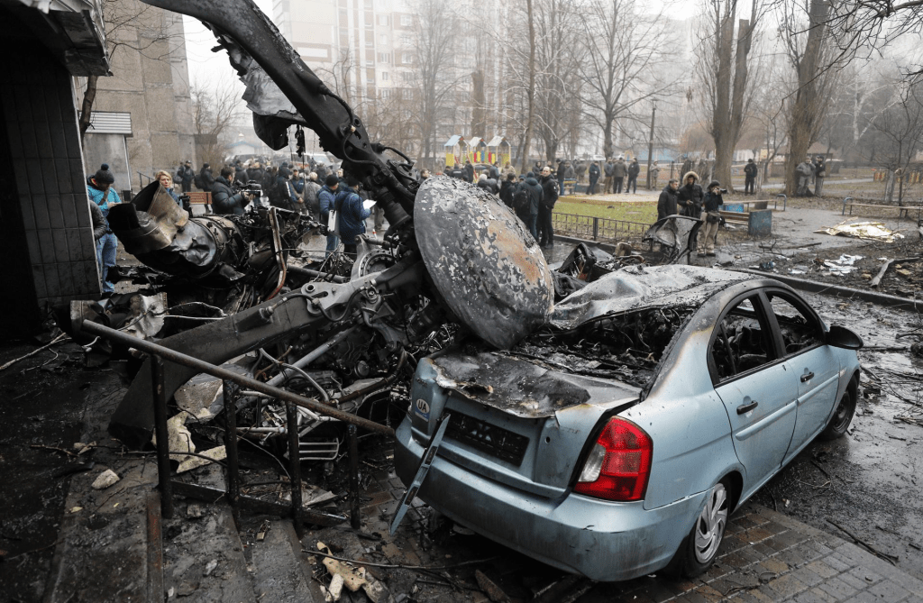 El ministro del Interior de Ucrania, Denis Monastirski, y otros representantes de primer nivel del ministerio figuran entre los 14 muertos registrados el miércoles en un accidente de helicóptero en la ciudad ucrania de Brovari, situada en la región de Kiev. Es la última cifra que han ofrecido los servicios de emergencia, después de que las agencias gubernamentales ucranias hubiesen publicado un mayor número de víctimas (habían informado de 17 fallecidos, incluidos cuatro niños). Son los primeros altos cargos ucranios fallecidos durante la guerra. Las posibles causas del accidente están siendo investigadas pero testimonios en Brovari apuntan a un posible accidente.