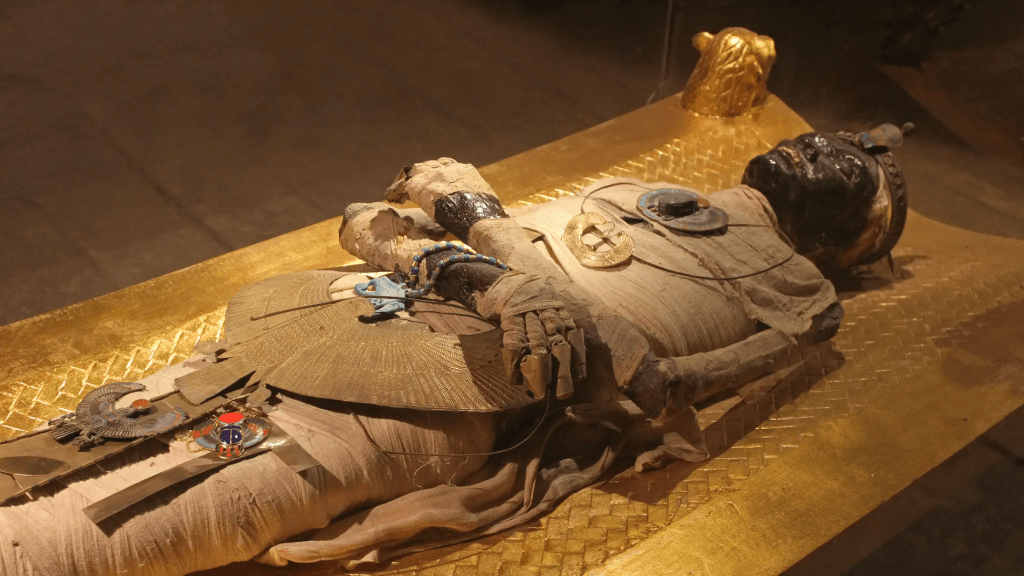 El escaneado ha sido llevado a cabo por Sahar Saleem, profesor de radiología de la facultad de Medicina de la Universidad de el El Cairo, que ha atestiguado la presencia de un escarabajo de oro incrustado en su garganta y una lengua de oro en la boca. El «golden boy» fue descubierto en 1916 y está expuesto en el Museo Egipcio de El Cairo, donde aún no parece haber llegado el debate sobre cómo llamar o no llamar a las momias.