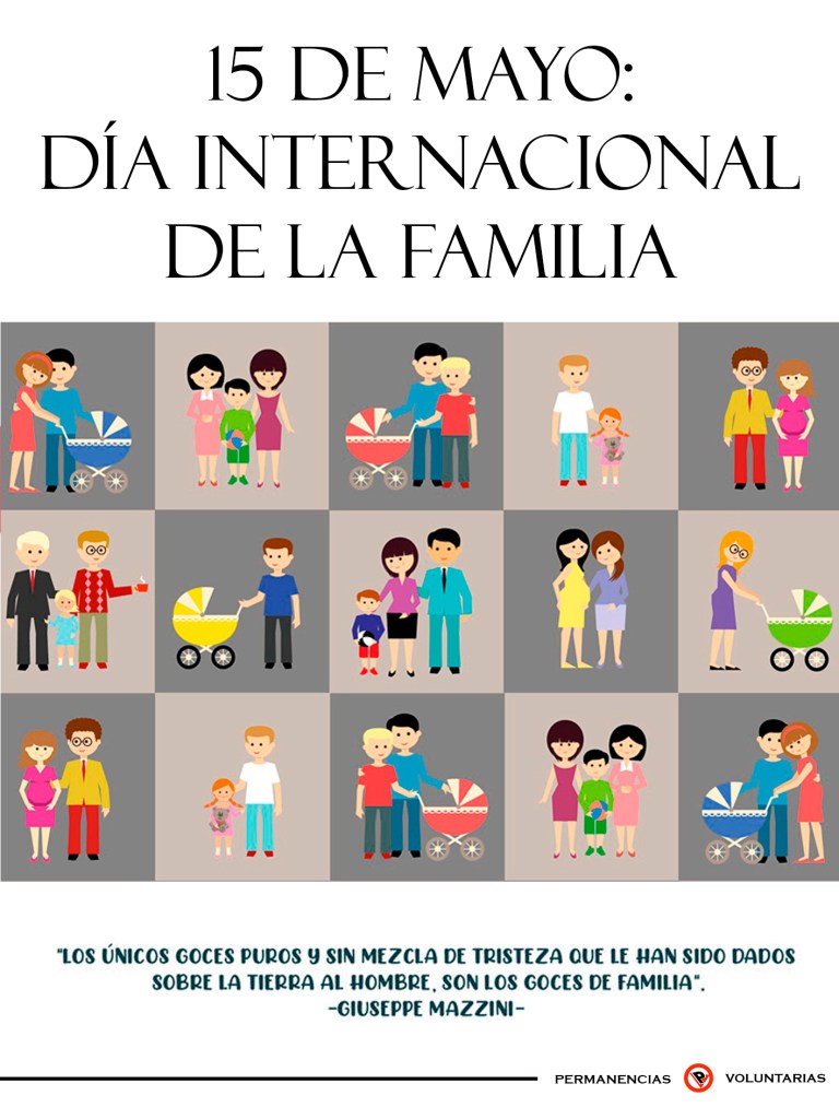 El Día Internacional de las Familias se celebra el 15 de mayo de cada año, con el fin de concienciar a la población sobre el papel que tiene la familia en la educación y la formación de los hijos desde la primera infancia, así como fomentar los lazos familiares y la unión familiar.