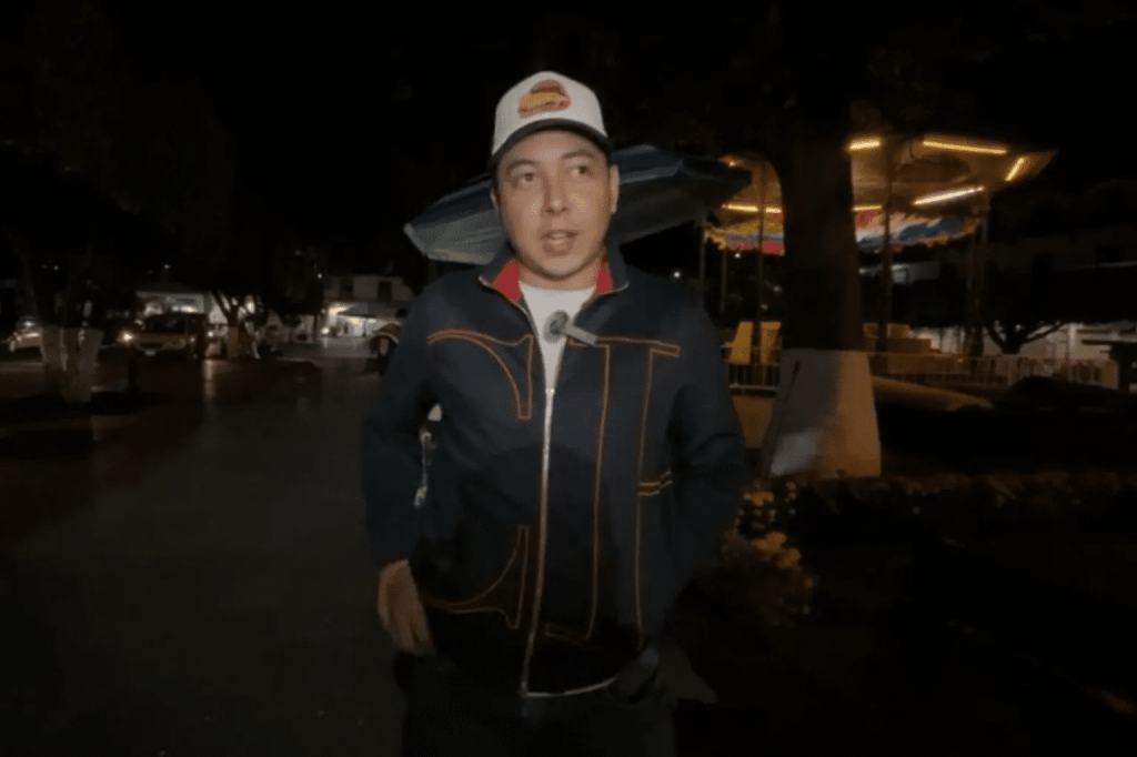 A los 32 minutos de haber iniciado su transmisión, se aparece el alcalde, Carlos Manzo Rodríguez, sobre la calle García Ortíz y los periodistas lo abordan en entrevista.