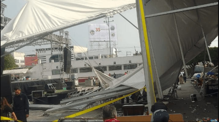 En conferencia de prensa, el alcalde de Nezahualcóyotl puntualizó que a las 15:37 horas se registraron ráfagas intensas de viento que derivaron en la caída de la carpa, del lado izquierdo, rachas que también generaron el derrumbe de 5 árboles y 7 postes de energía eléctrica, en las colonias Benito Juárez, La Perla, San Agustín y Prados de Aragón.