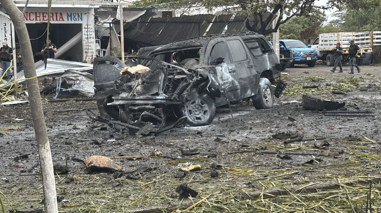 Alrededor de las 11:40 horas el estruendo hizo temblar la tierra, estalló el coche bomba afuera de la base de la Policía Comunitaria, frente a la Presidencia Municipal.